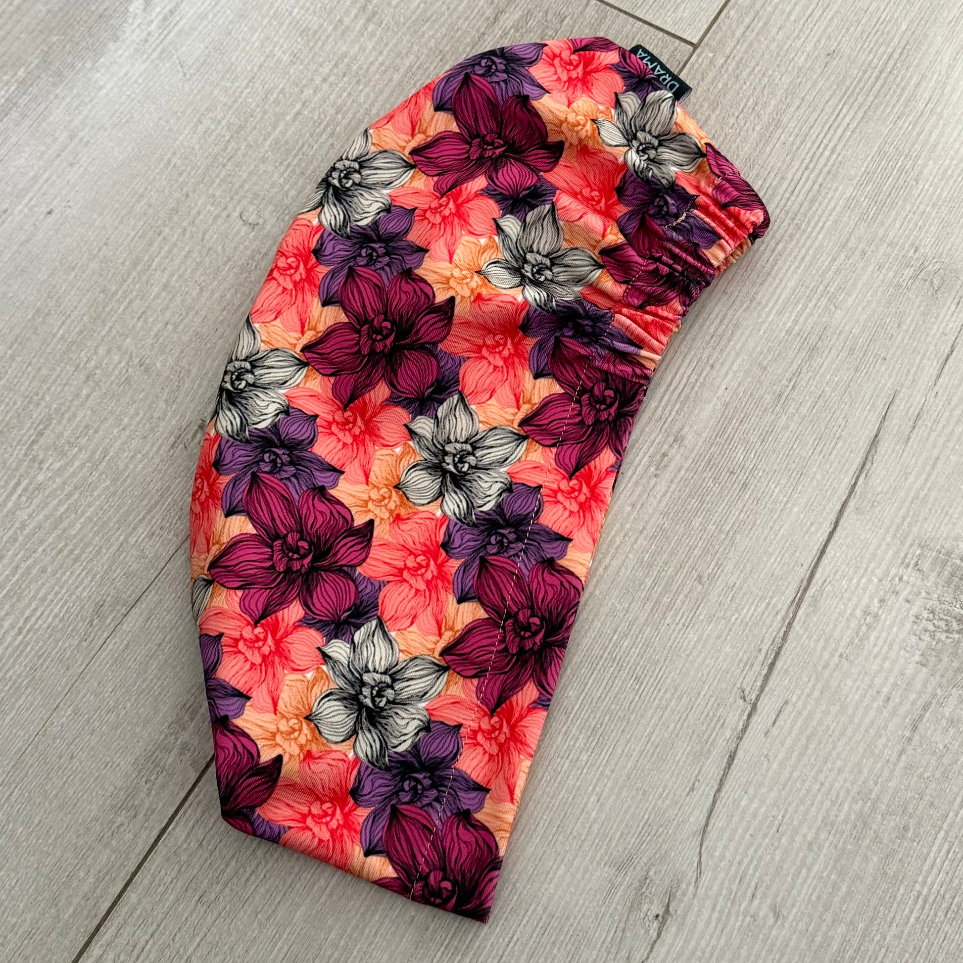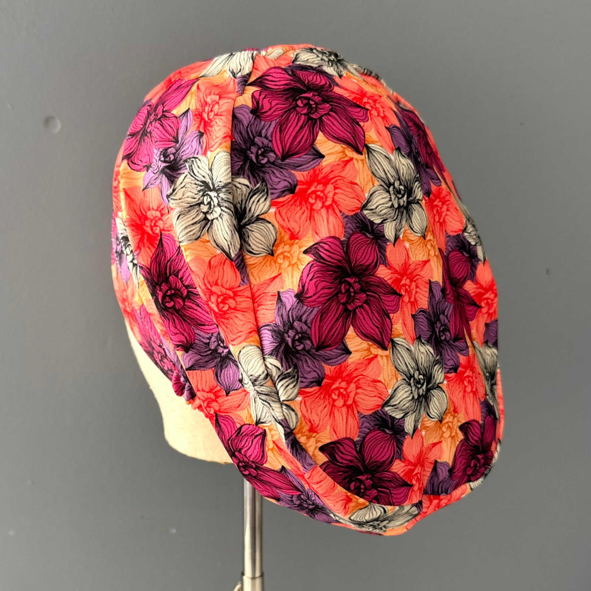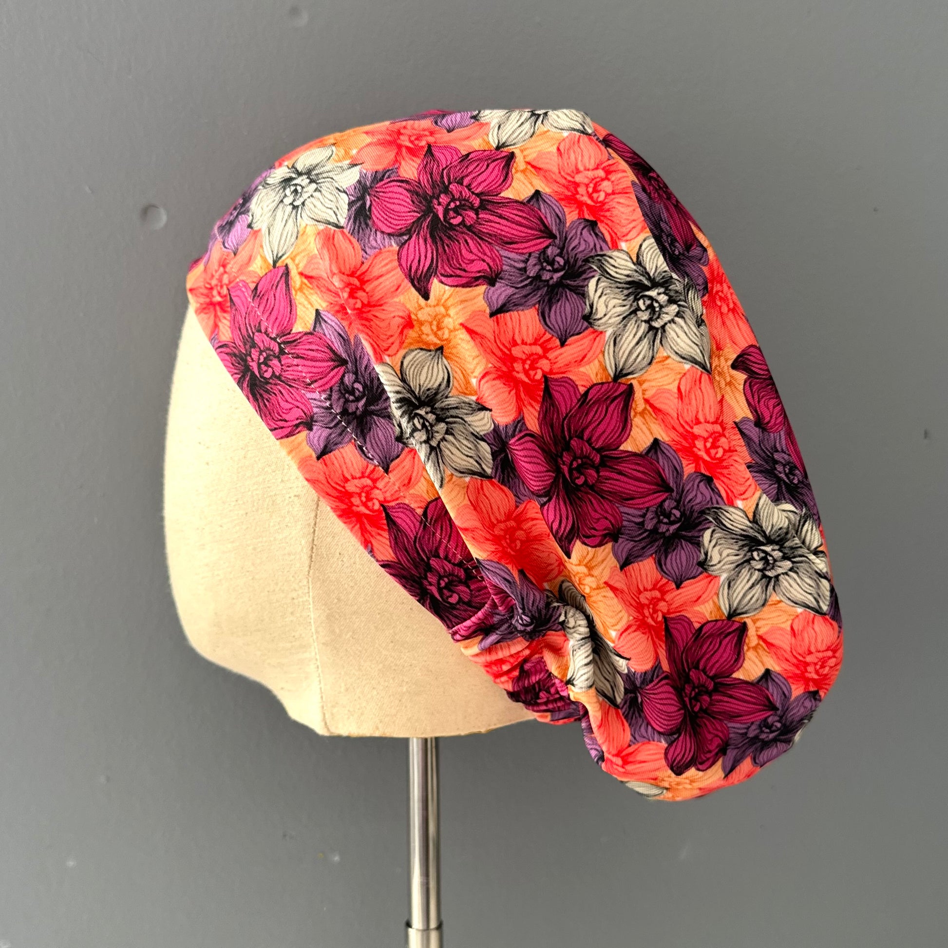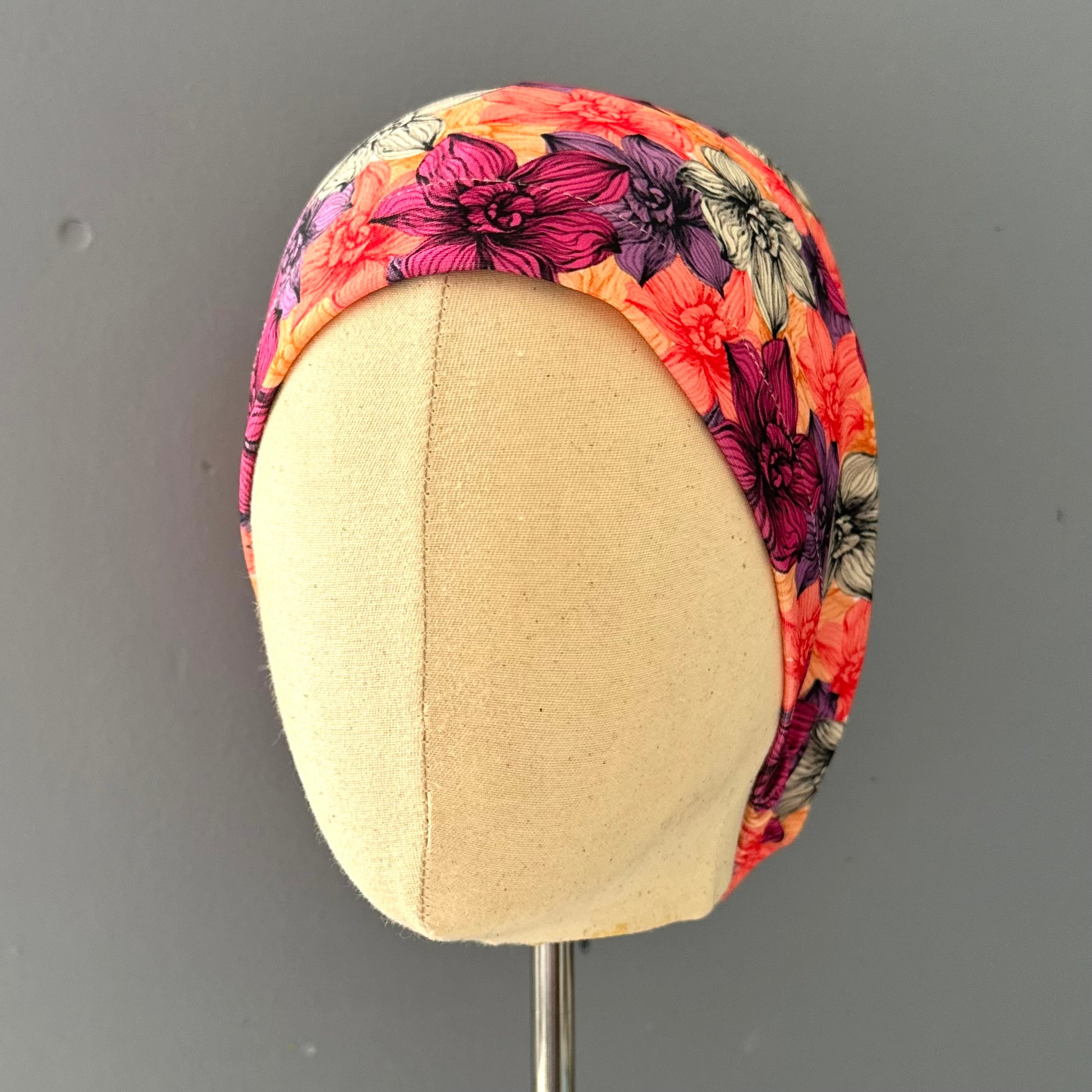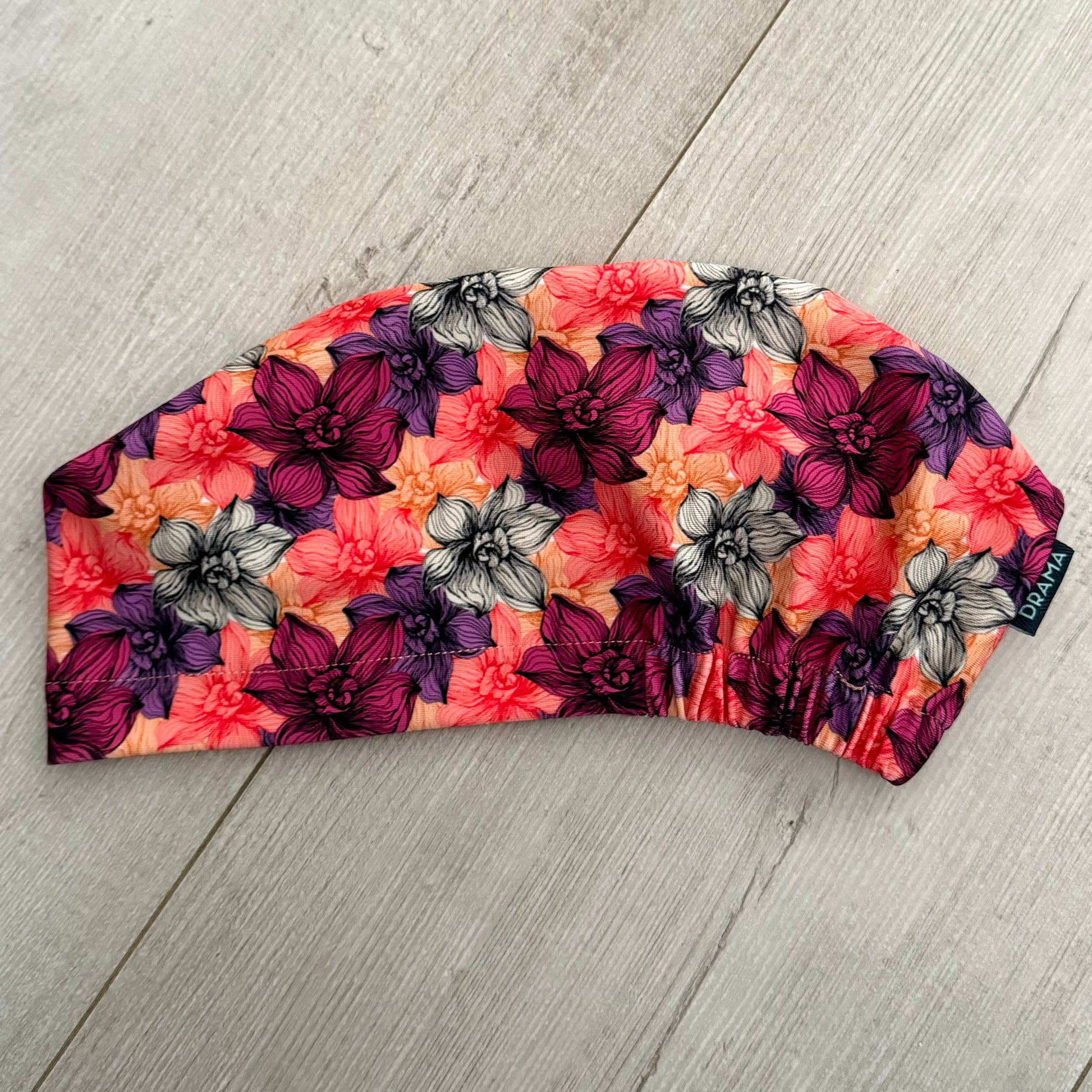 Cofia flores mordas Hecha cuidadosamente a mano con tela elasticada y de secado rápido que no requiere planchado. Excelente calce y amigable con el cabello.✨