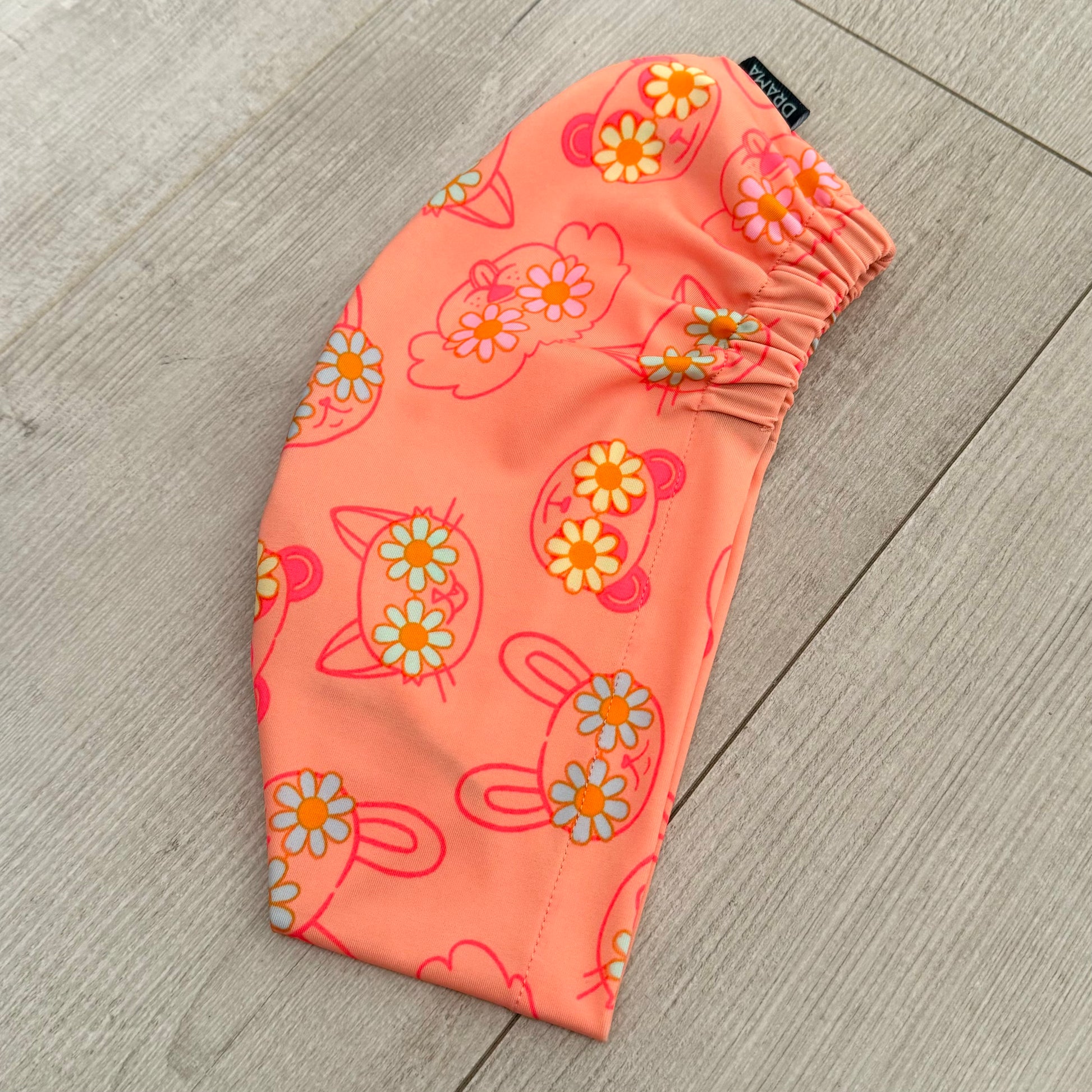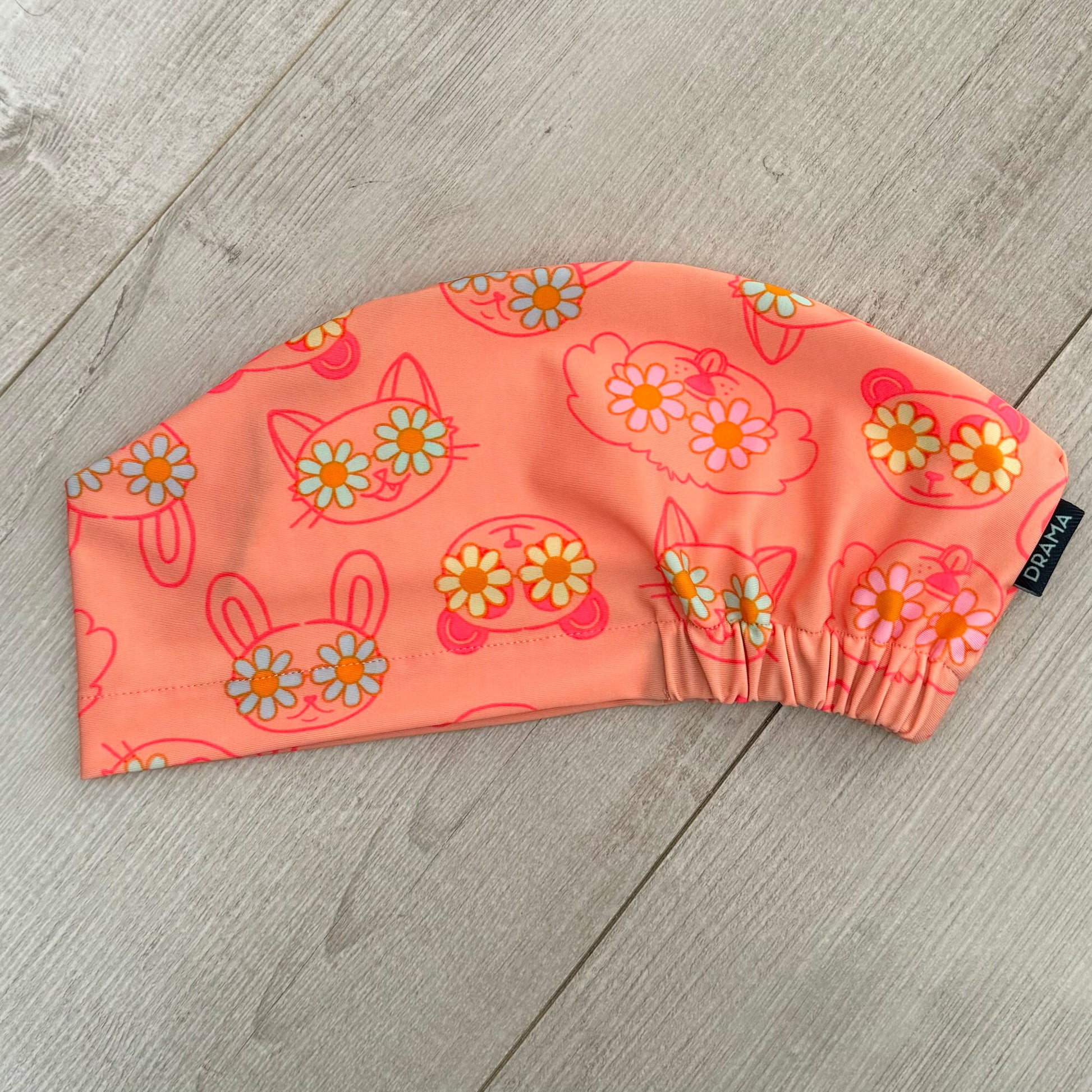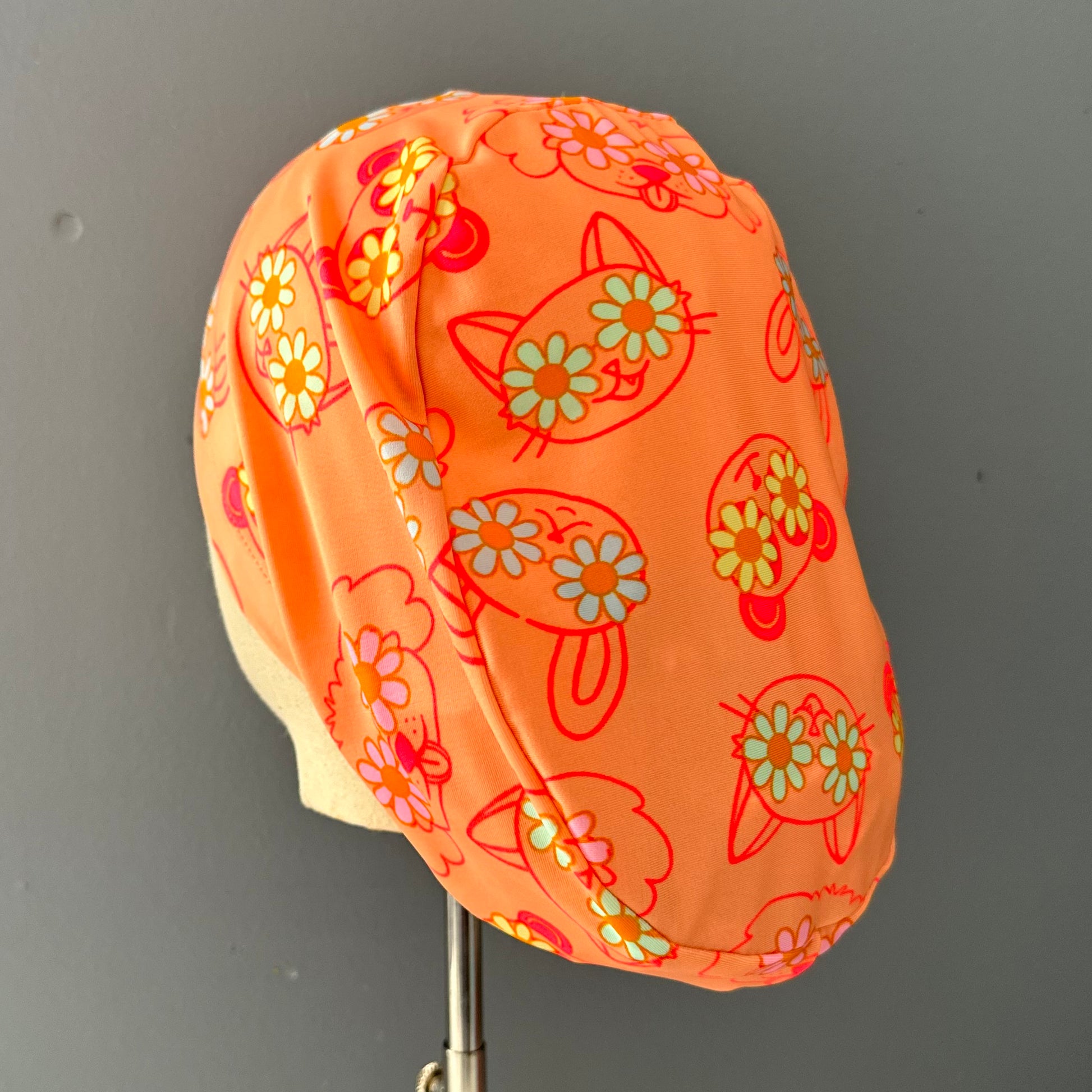 Cofia gatitos y flores Hecha cuidadosamente a mano con tela elasticada y de secado rápido que no requiere planchado. Excelente calce y amigable con el cabello.✨