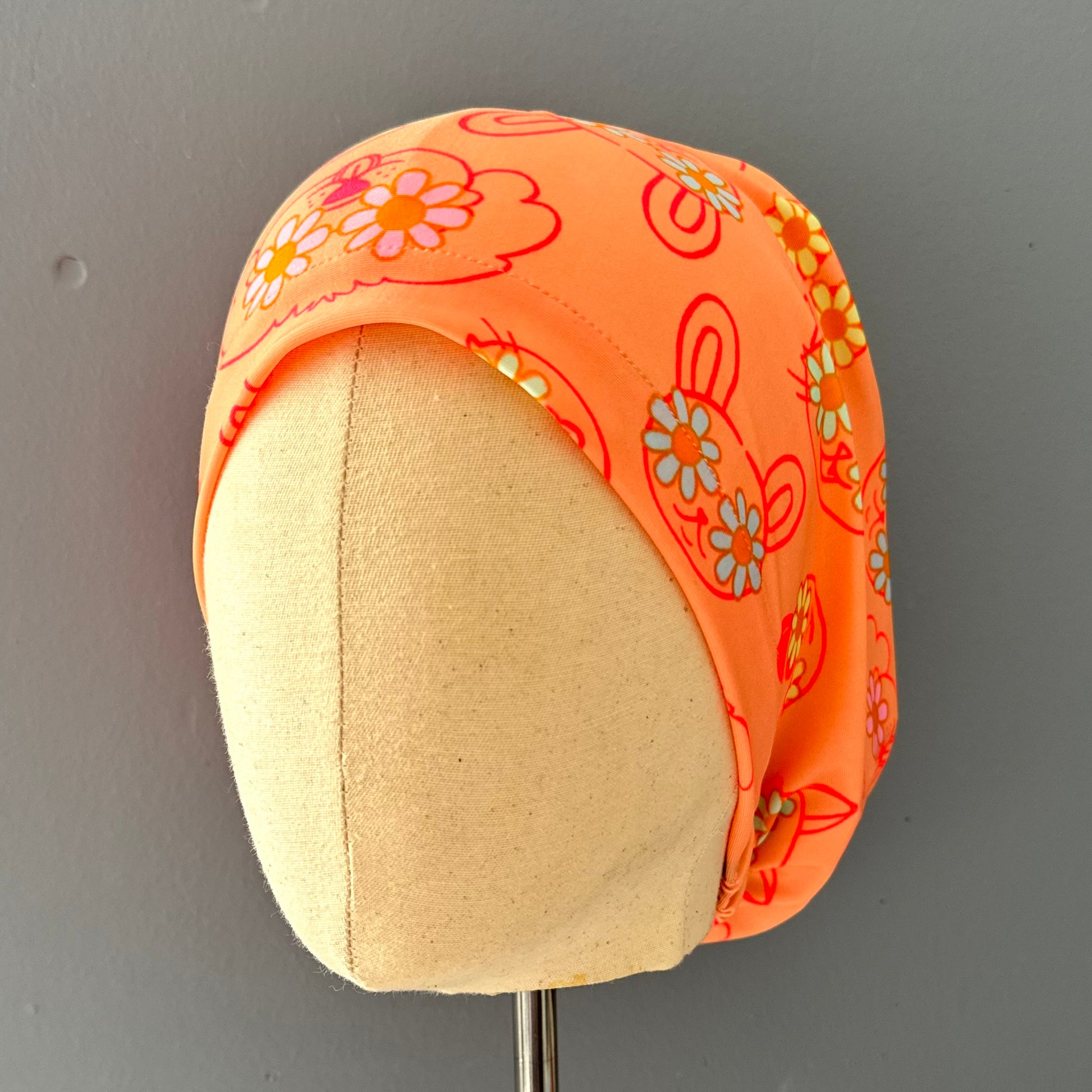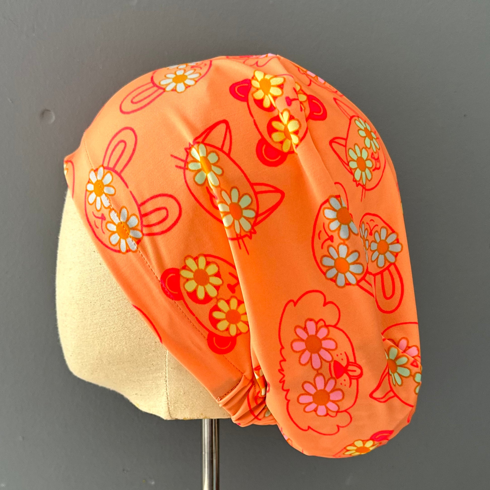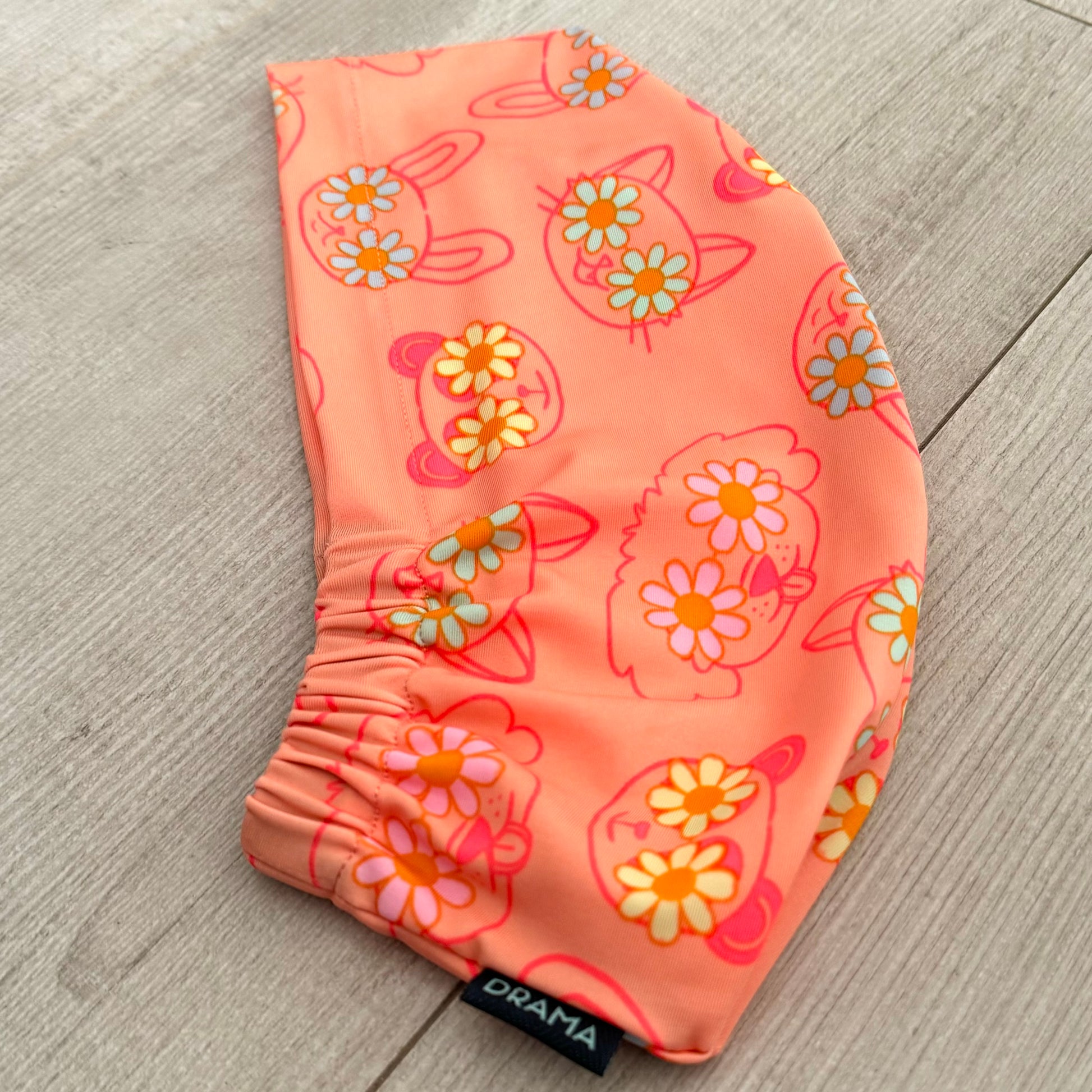 Cofia gatitos y flores Hecha cuidadosamente a mano con tela elasticada y de secado rápido que no requiere planchado. Excelente calce y amigable con el cabello.✨