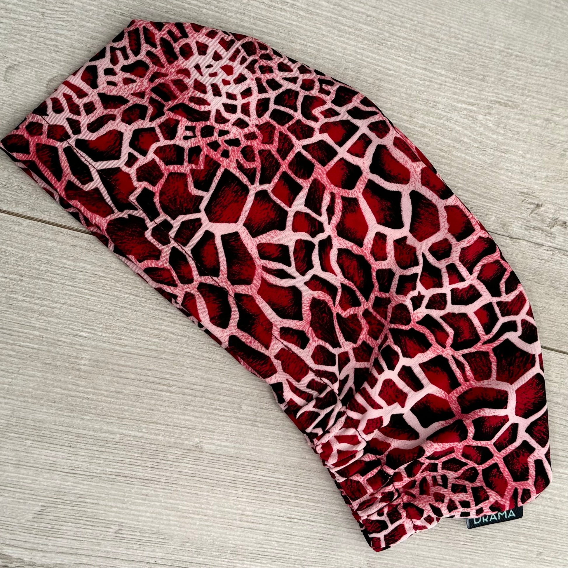 Cofia roja print❤️ Hecha cuidadosamente a mano con tela elasticada y de secado rápido que no requiere planchado. Excelente calce y amigable con el cabello.✨