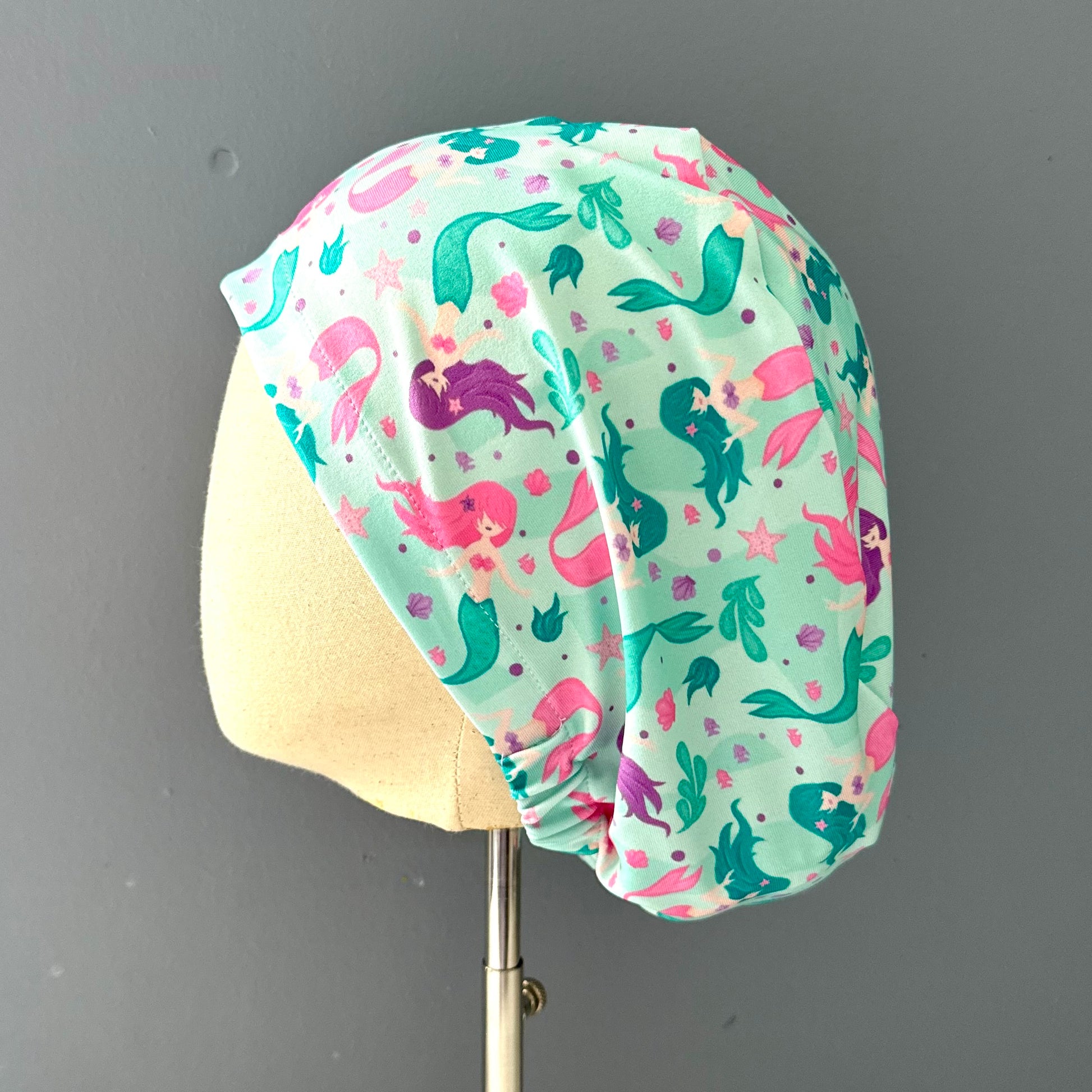 Cofia sirena 🧜♀️ Hecha cuidadosamente a mano con tela elasticada y de secado rápido que no requiere planchado. Excelente calce y amigable con el cabello.✨
