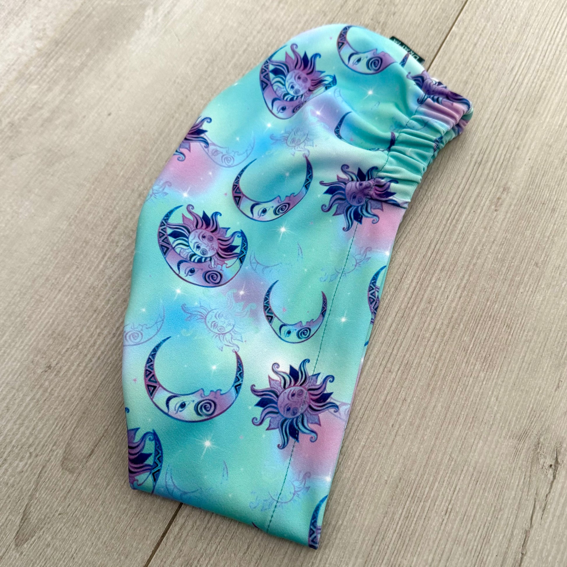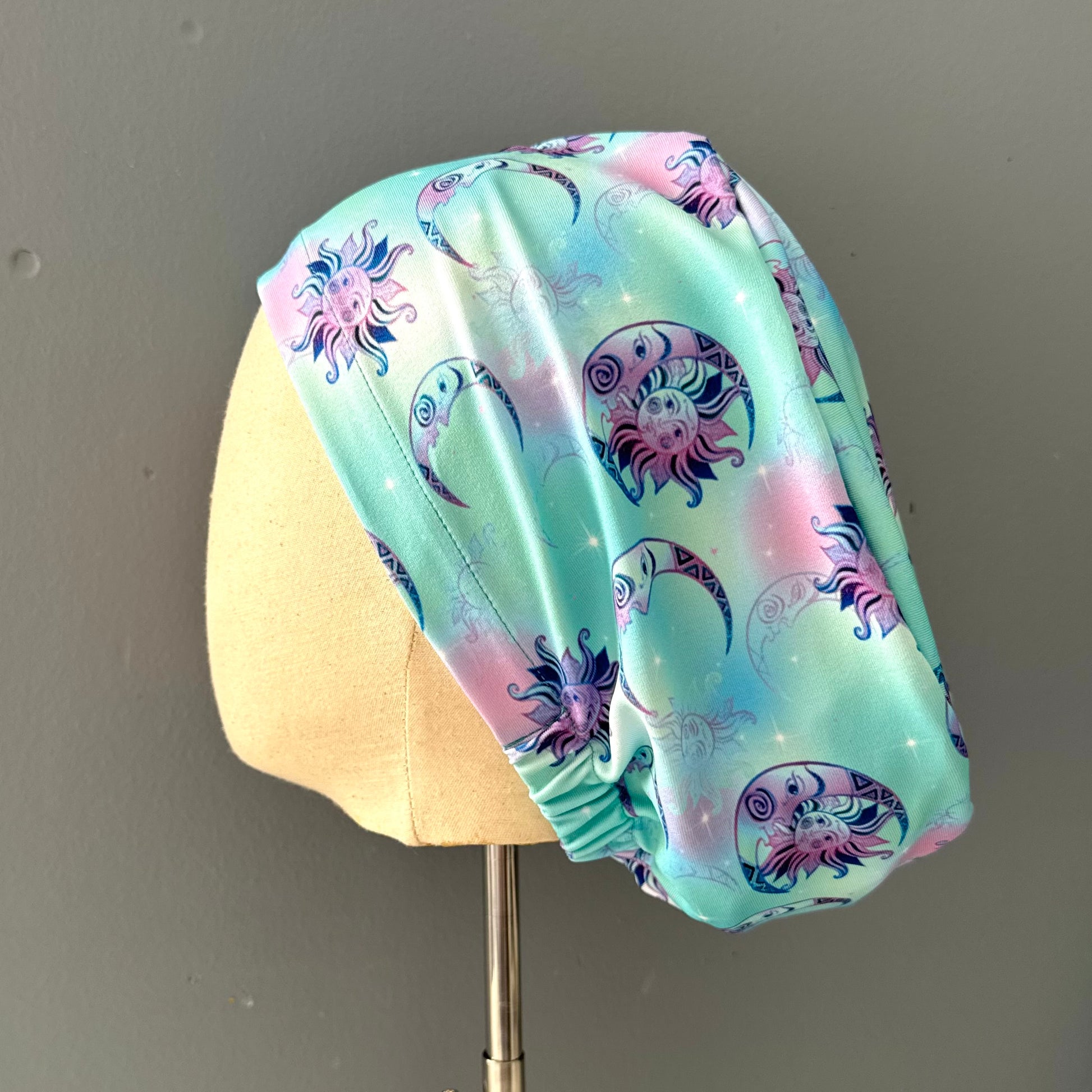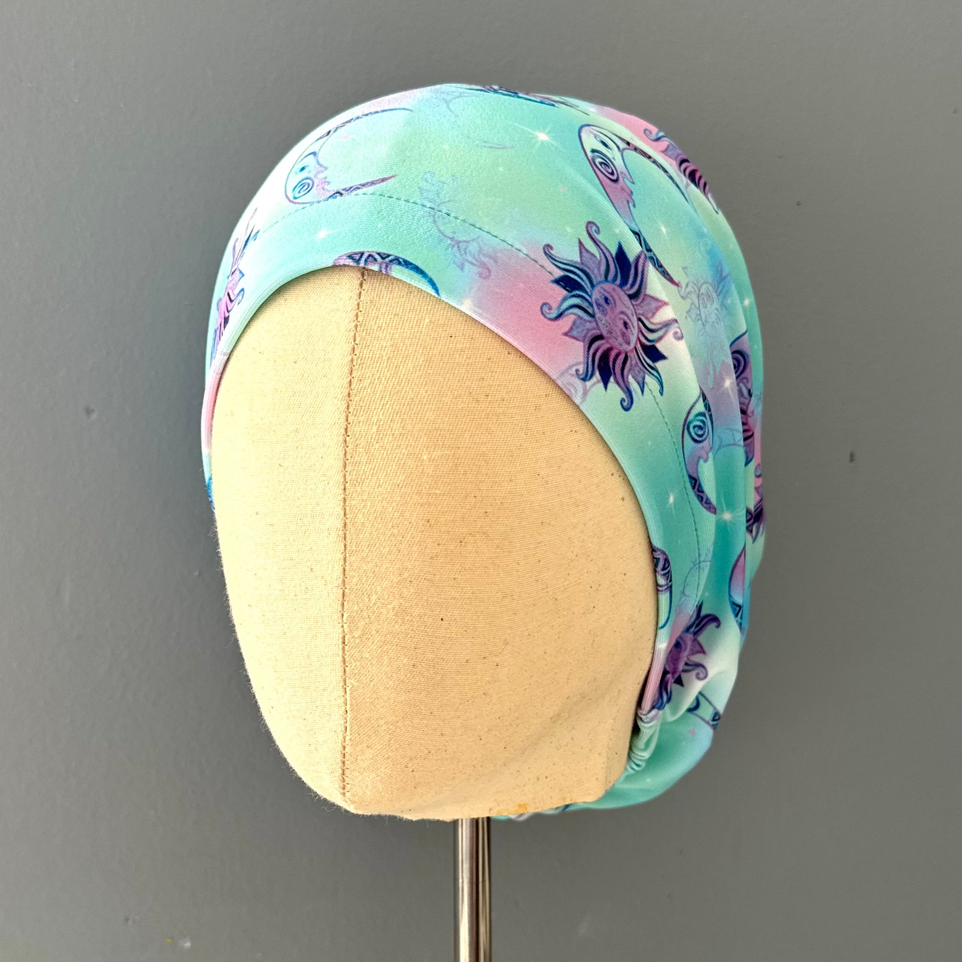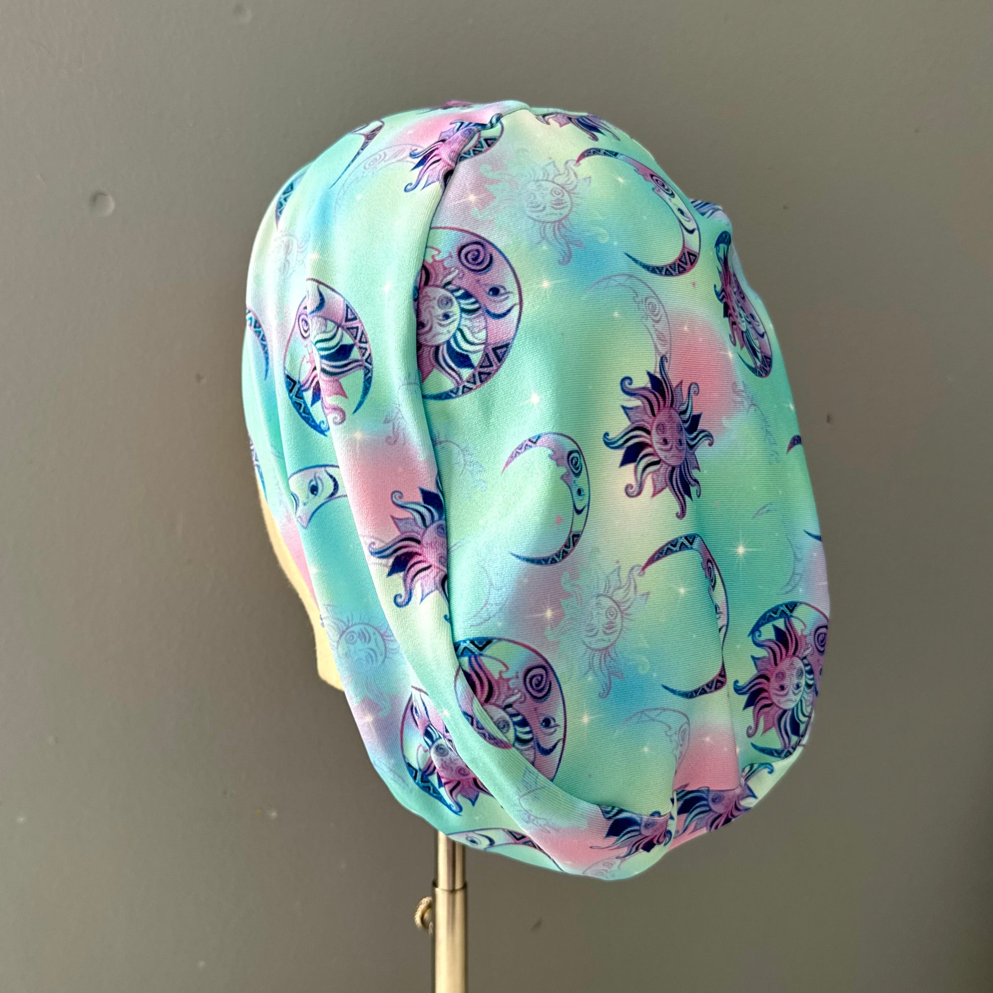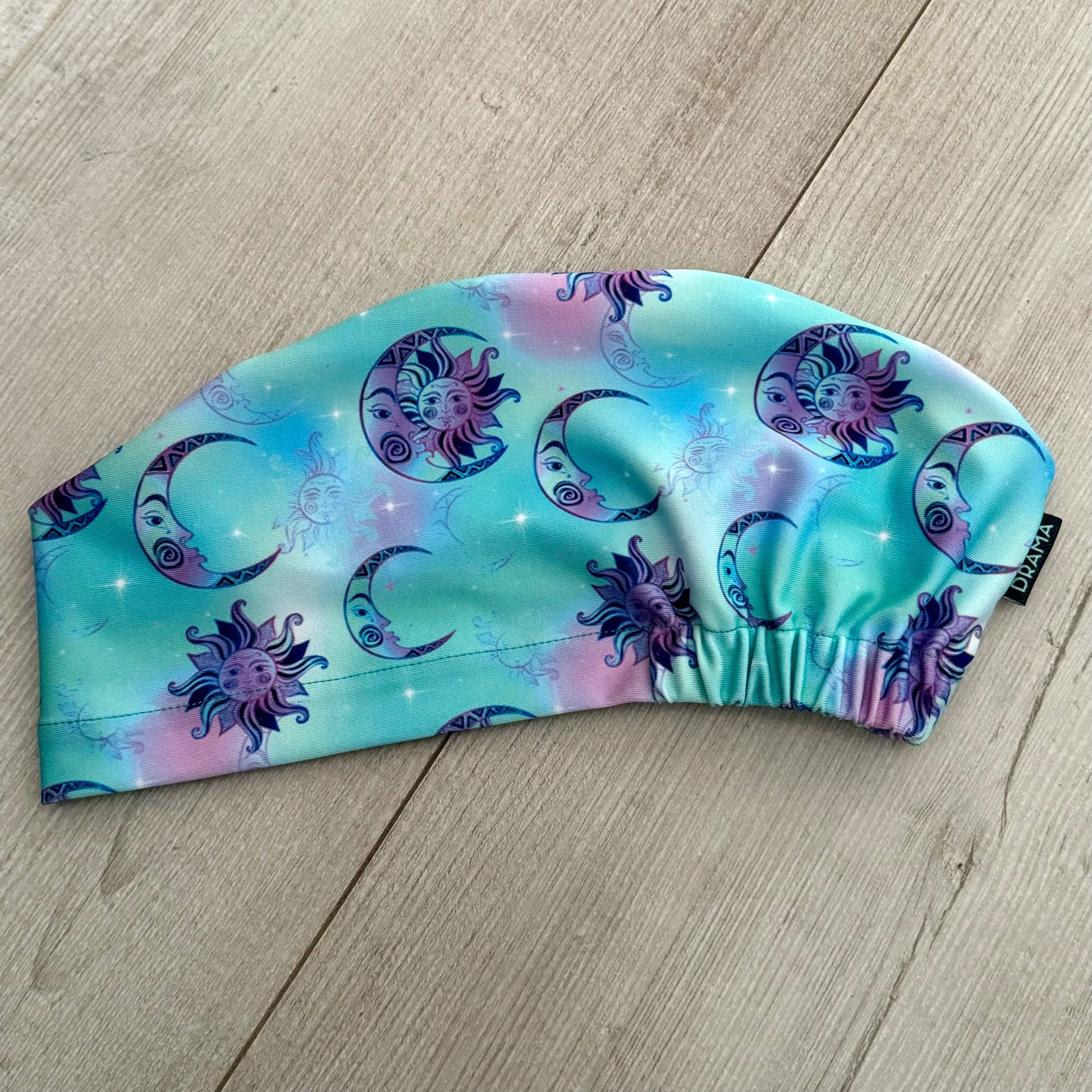 Cofia sol y luna Hecha cuidadosamente a mano con tela elasticada y de secado rápido que no requiere planchado. Excelente calce y amigable con el cabello.✨