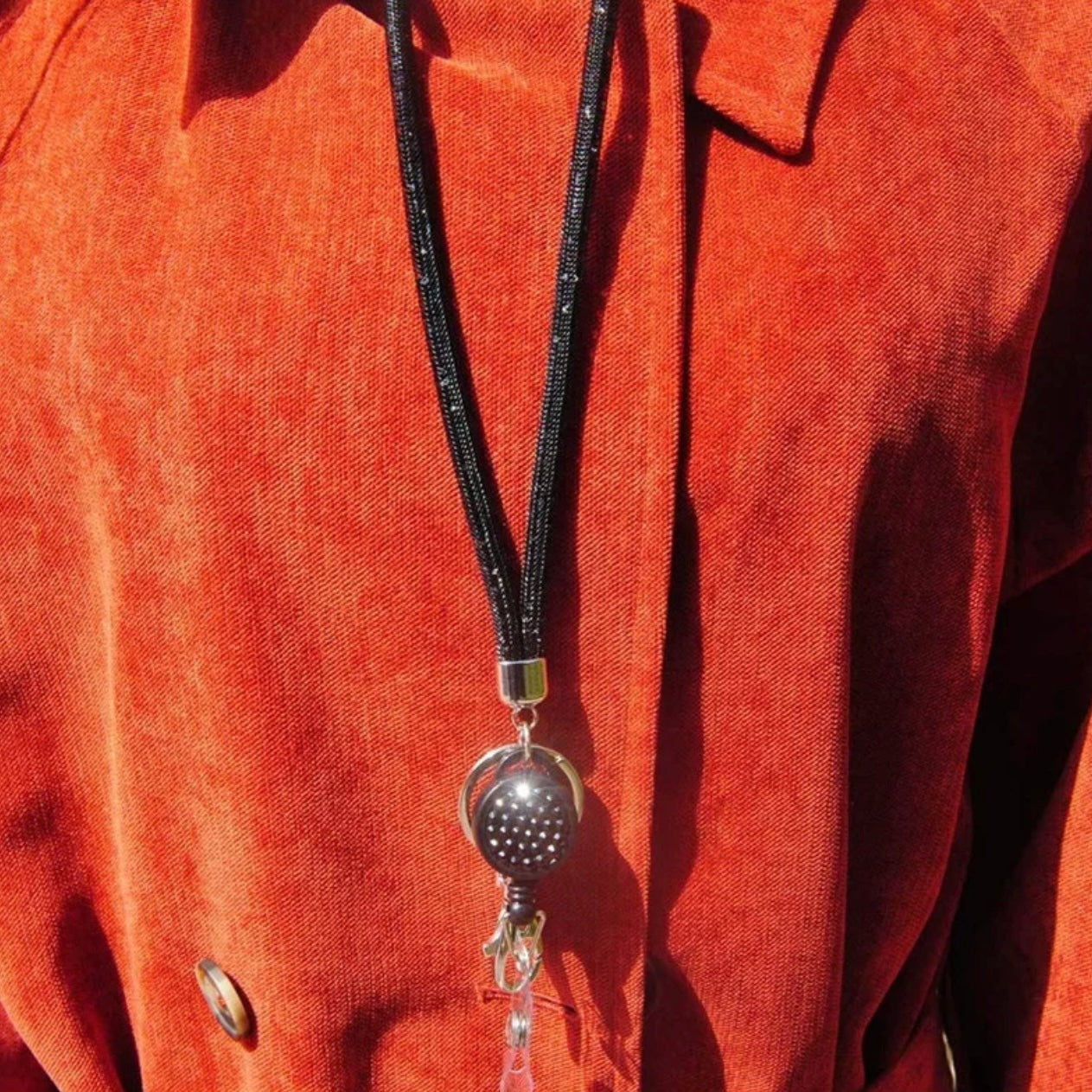 Ideal para portar tu identificación, tarjetas o llaves con seguridad y estilo. Cuenta con clip giratorio resistente y cordón retráctil para mayor comodidad.