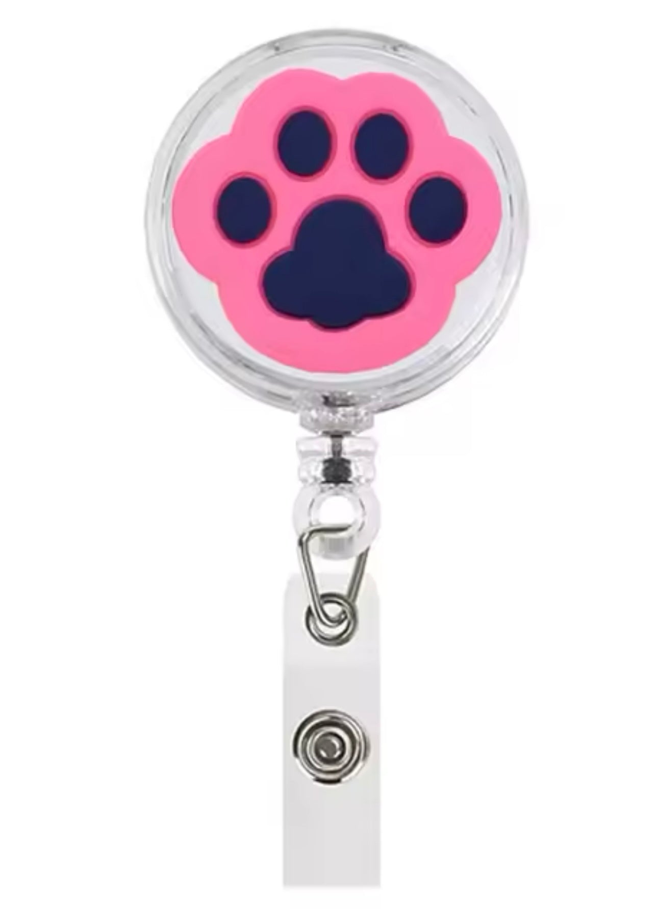 Portacredencial retráctil huella rosada-azul marino