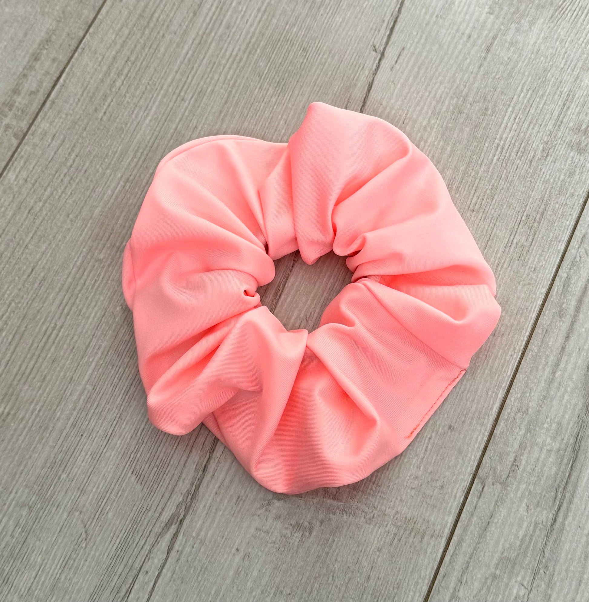 Scrunchie rosado claro🩷 hecho cuidadosamente a mano con tela lycra elasticada. Gentil con el cabello.